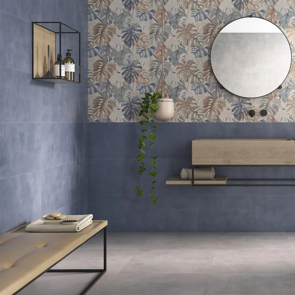 The Eleganza Blu wall tile offers a bold and contemporary design, perfect for transforming interiors with modern sophistication. Crafted in Spain by Pamesa Ceramica, this striking ceramic tile features a refined concrete effect finish in a rich blue tone, bringing depth, character, and style to any wall surface. Its elongated 333x1000mm format provides a sleek, seamless appearance, making it an excellent choice for feature walls, bathrooms, or kitchens. Designed with a square rectified edge, the Eleganza Blu allows for minimal grout joints, creating a smooth, continuous surface that enhances its modern aesthetic.